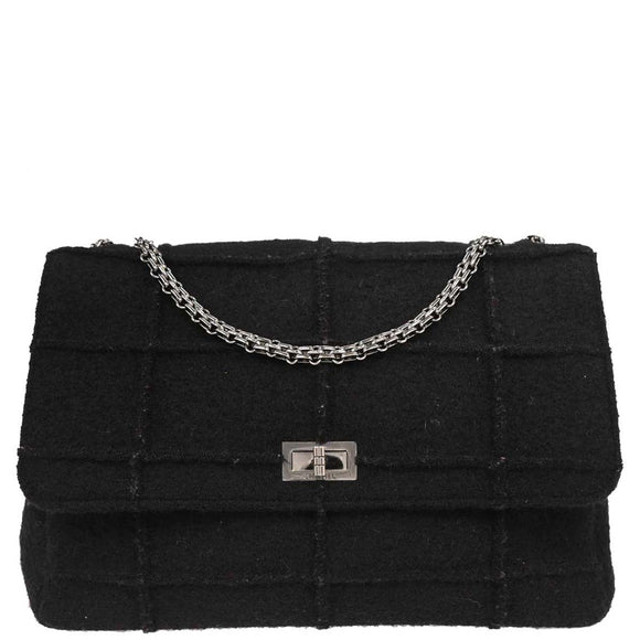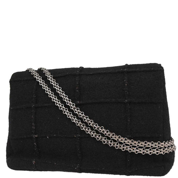Chanel 1997-1999 Black Wool 2.55 Choco Bar Shoulder Bag