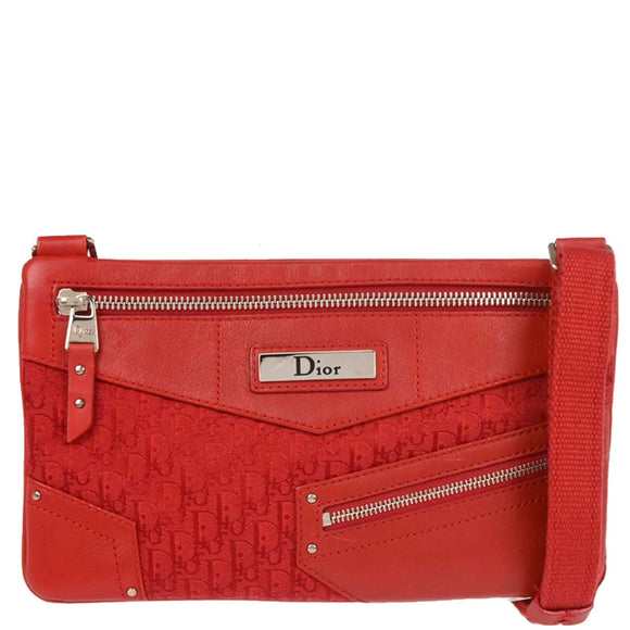 Christian Dior 2003 Red Canvas Trotter Shoulder Bag