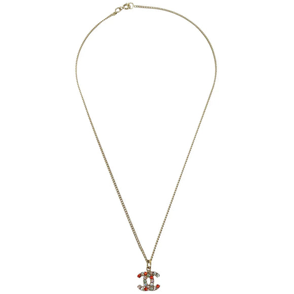 Chanel Gold Mini CC Pendant Necklace Rhinestone 04A