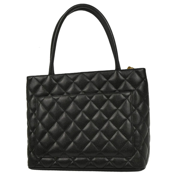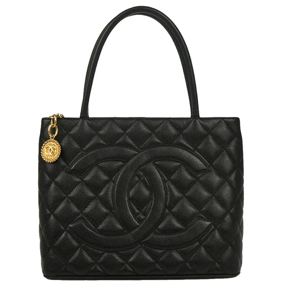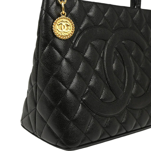 Chanel 2003-2004 Black Caviar Medallion Tote Handbag