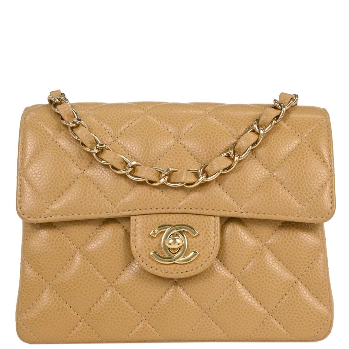 Chanel Beige Caviar Mini Classic Square Flap Shoulder Bag