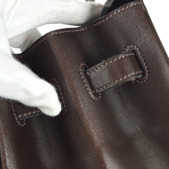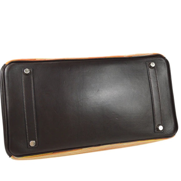 爱马仕伯金(Hermes Birkin)35 2003手提包颤音barenia深褐色橙色