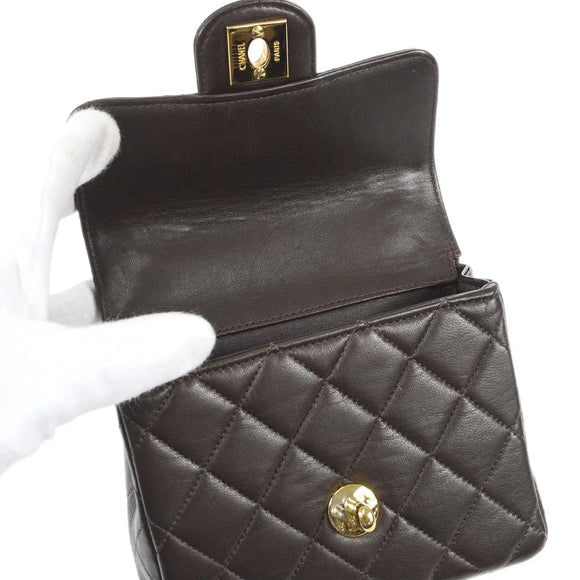 | 香奈儿经典襟翼微型手提包棕色羊毛 | |