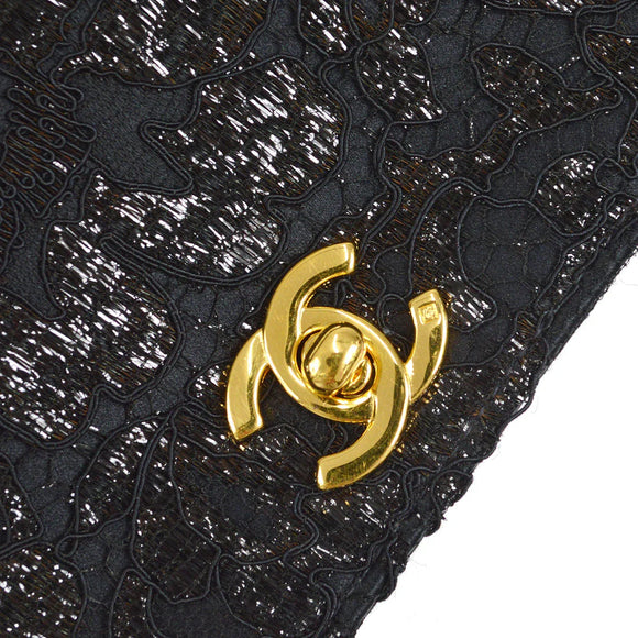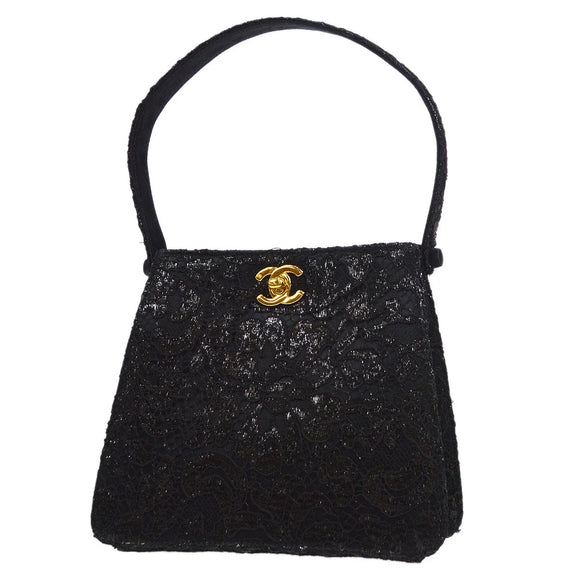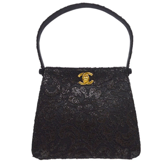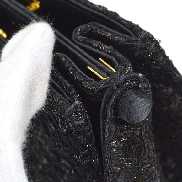 ★香奈儿 * 1997-1999蕾丝两侧手提包黑色缎