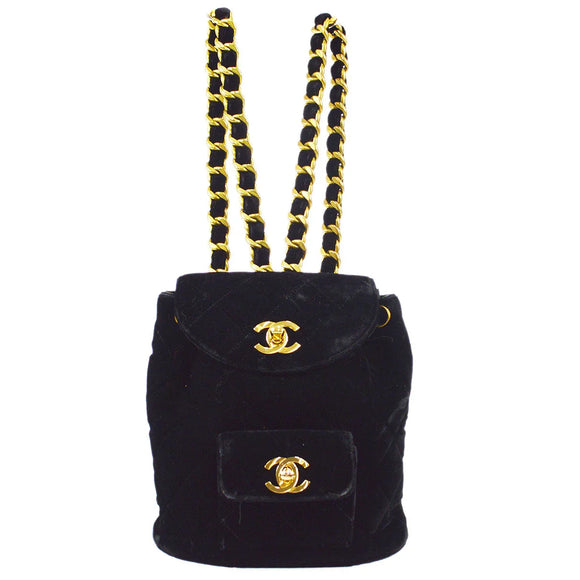| 香奈儿缝迷你杜马链链背包袋黑色天鹅绒 | |
