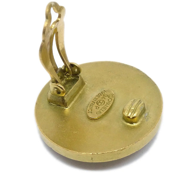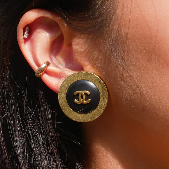 香奈儿(Chanel)1994纽扣耳环金色黑色夹具