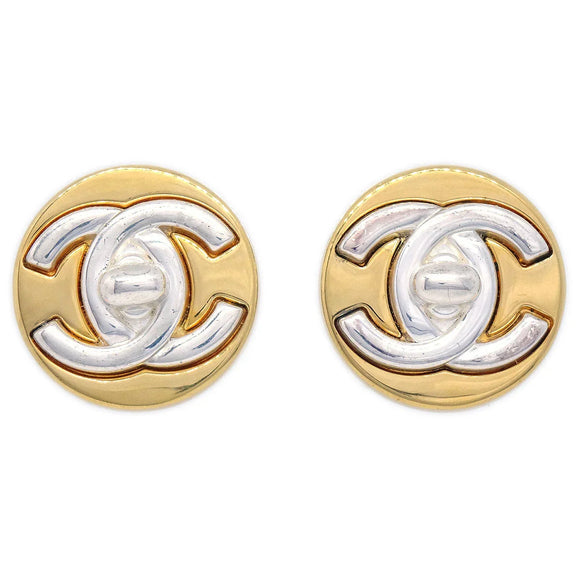 香奈儿(Chanel)1997银和金CC转锁耳环大