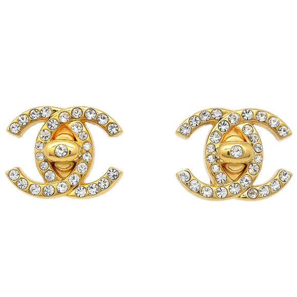 ダメージ/Chanel 1996黄金和水晶CC转锁耳环小