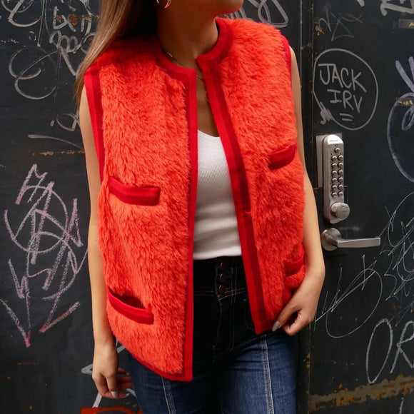 | 香奈儿94A#34皮草背心夹克红色 | |