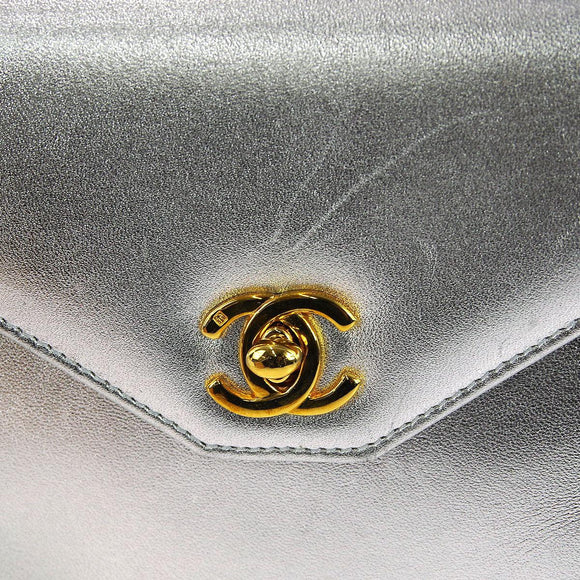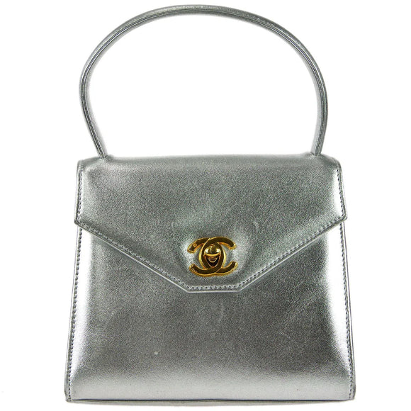Chanel * 1996-1997 Silver Lambskin Top Handle Bag