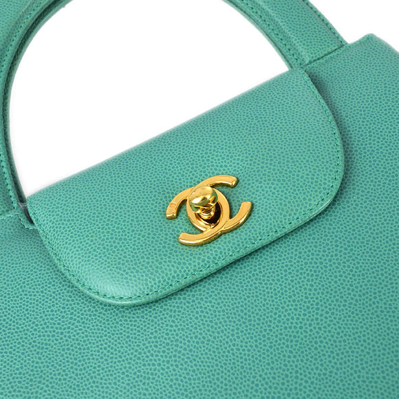 Chanel 1997-1999 Green Caviar Small Shopping Handbag