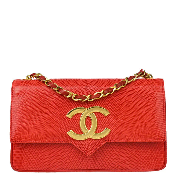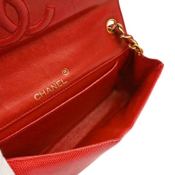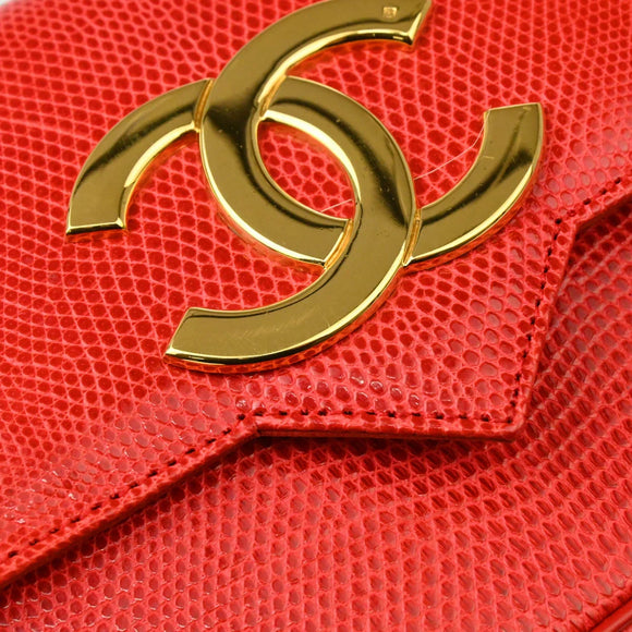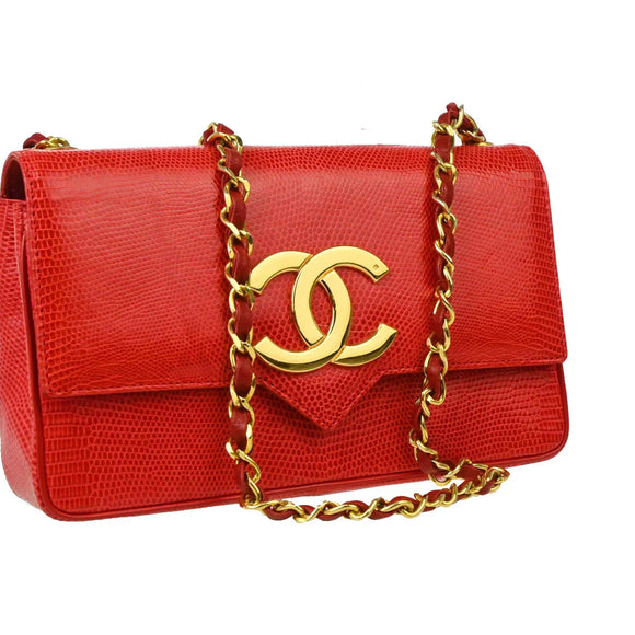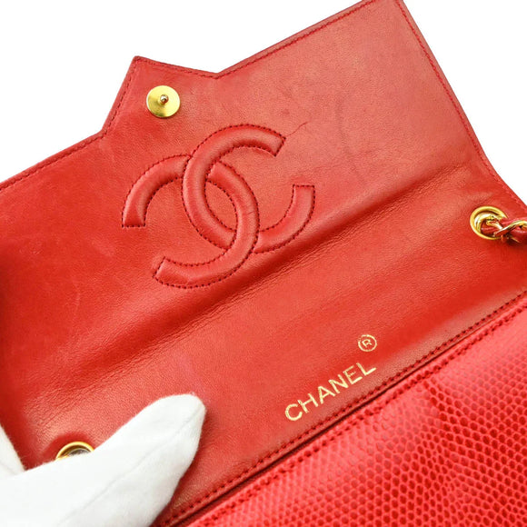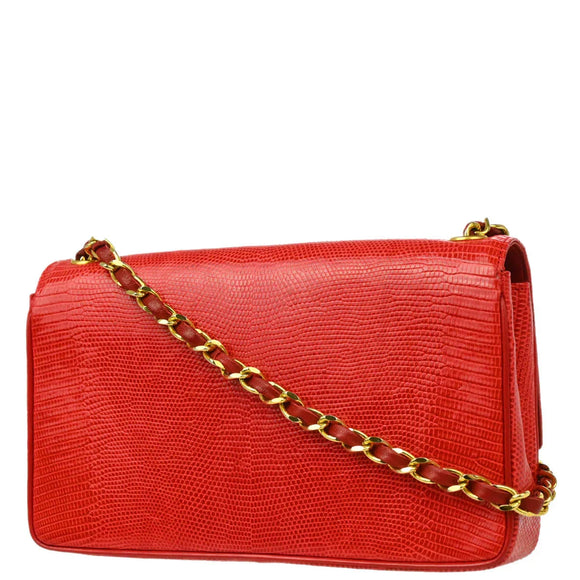 Chanel 1989-1991 Red Lizard Single Flap Shoulder Bag