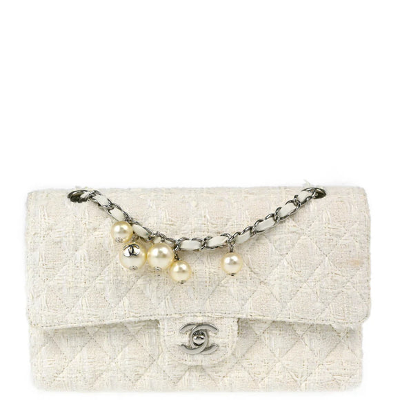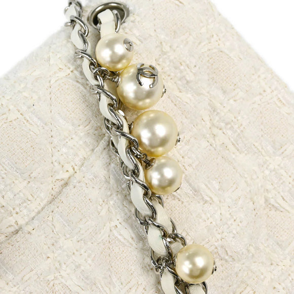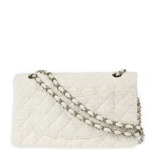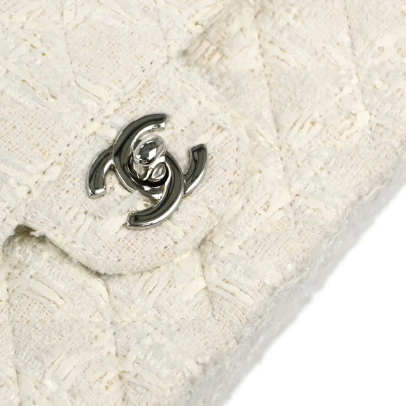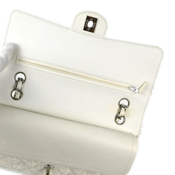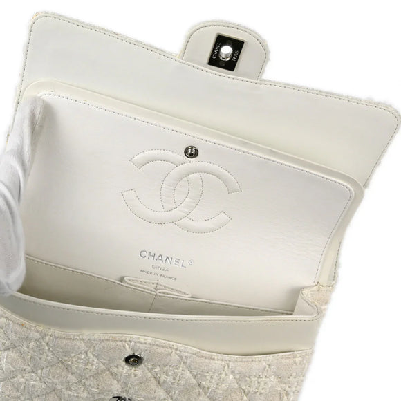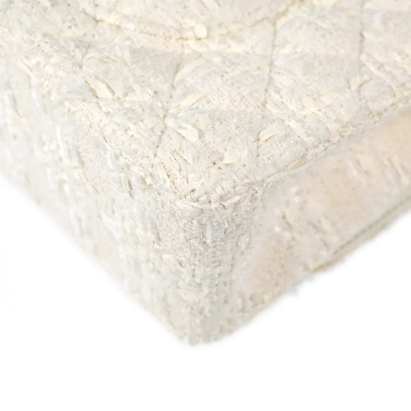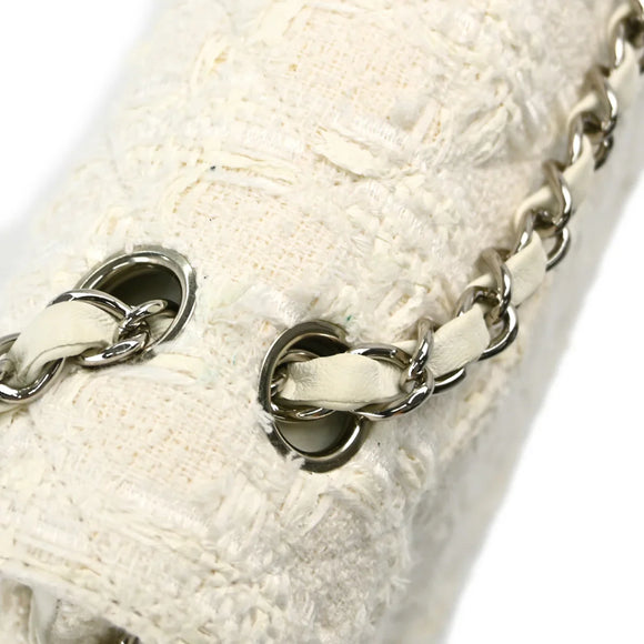 Chanel 2004-2005 White Tweed Medium Classic Double Flap Shoulder Bag