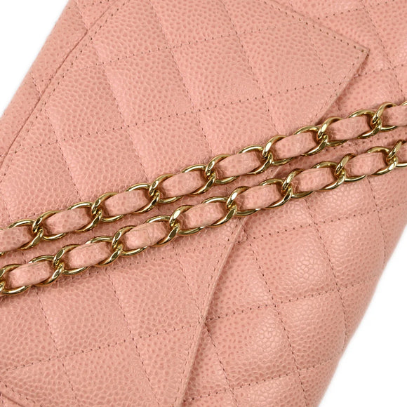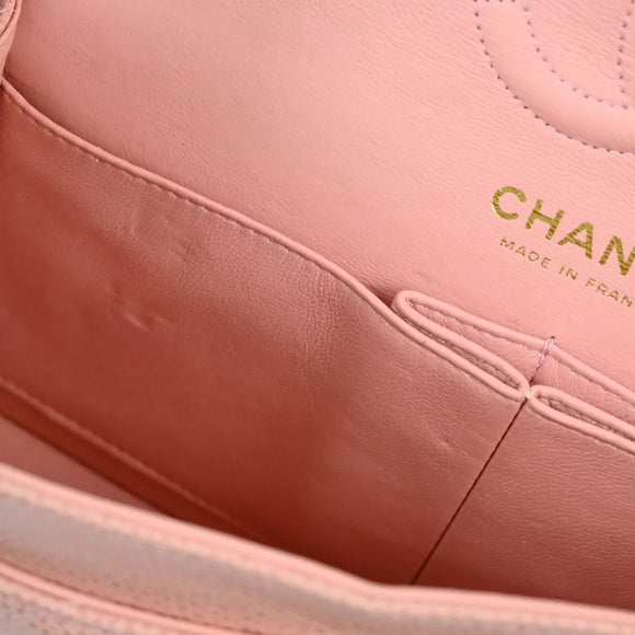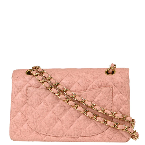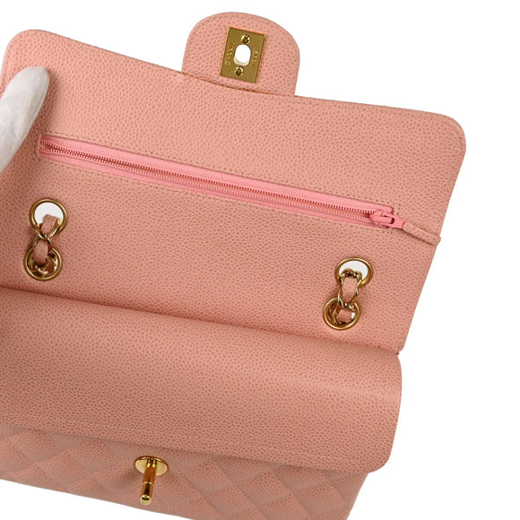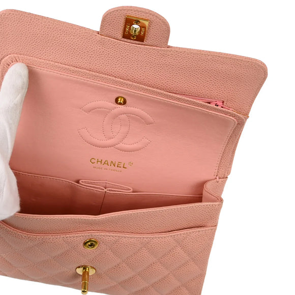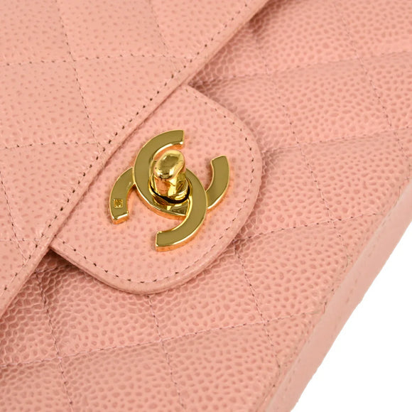 Chanel 2003-2004 Pink Caviar Small Classic Double Flap Shoulder Bag