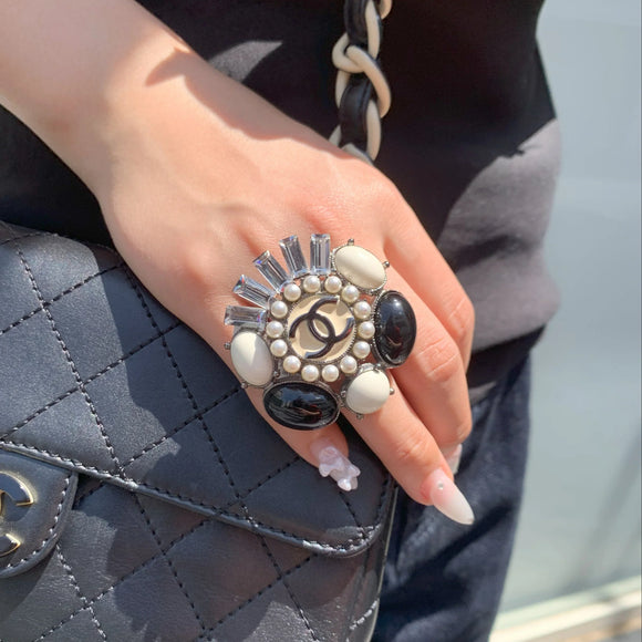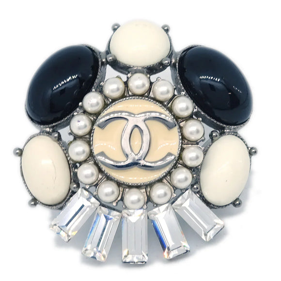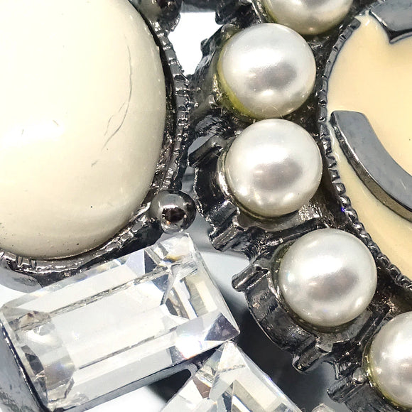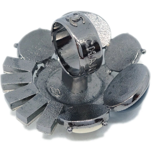 Chanel Ring Silver Rhinestone Costume Pearl #53 #13 06C