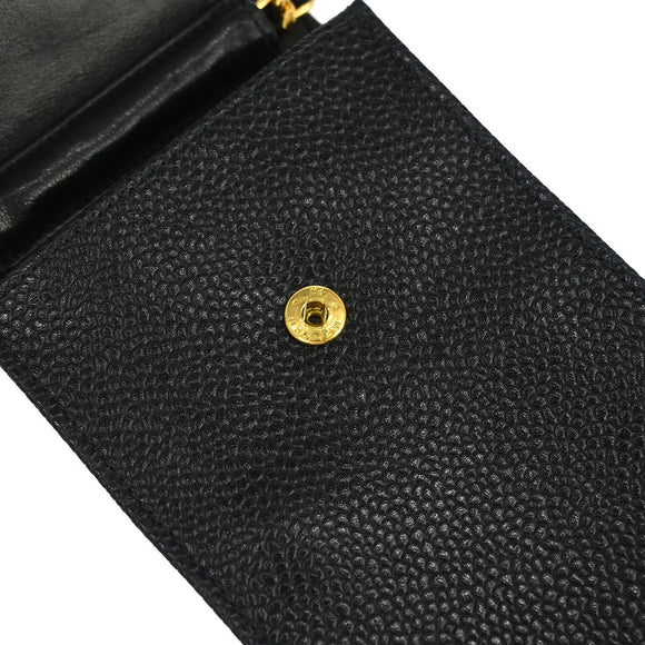 Chanel 1997-1999 Black Caviar Chain Shoulder Bag Pochette Case