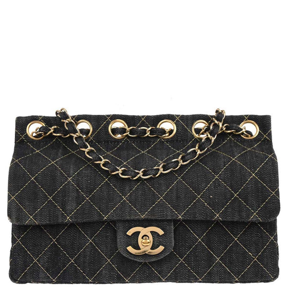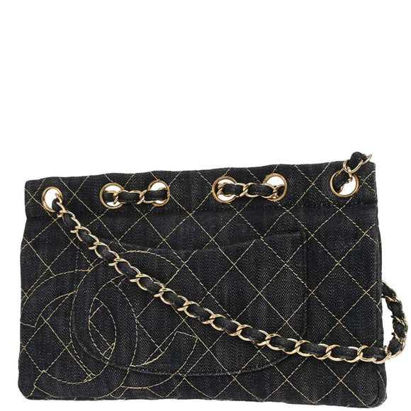 Chanel 2005-2006 Navy Denim Single Flap Chain Shoulder Bag
