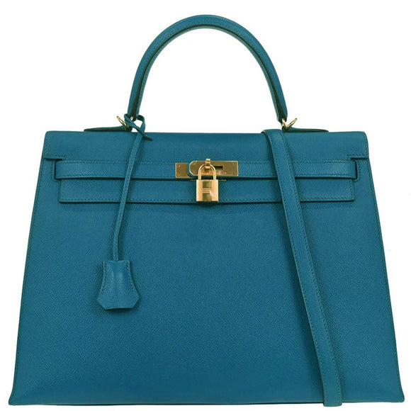 Hermes Blue Izmir Epsom Kelly 35 Sellier 2way Shoulder Handbag