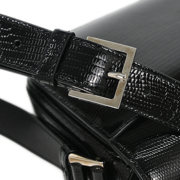 | Color / Material | Black / Embossed patent leather |