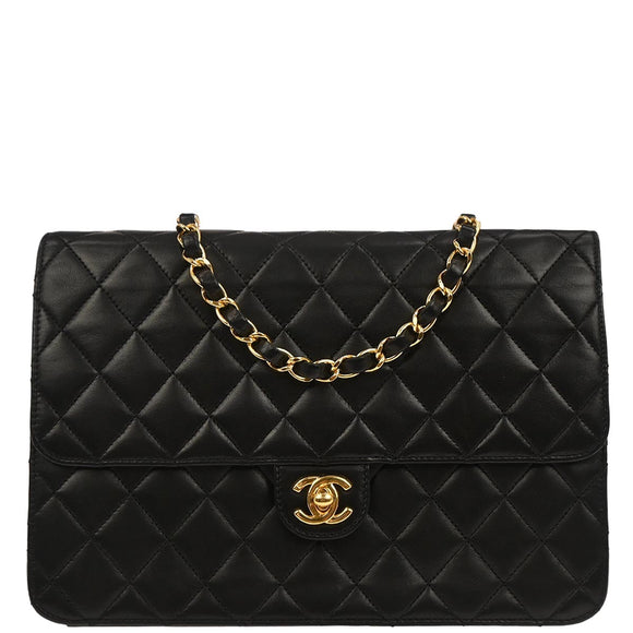 Chanel Black Lambskin Turnlock Medium Half Flap Shoulder Bag
