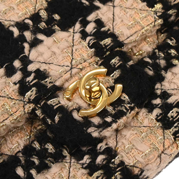 Chanel * Beige Tweed Classic Single Flap 2 in 1 Handbag Set