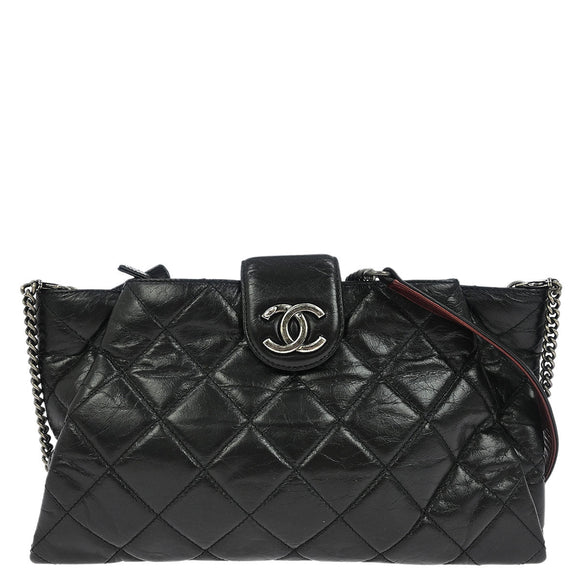 Chanel Black Calfskin Coco Pleats Clutch Crossbody Bag