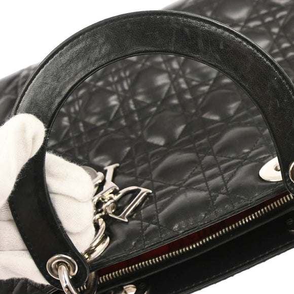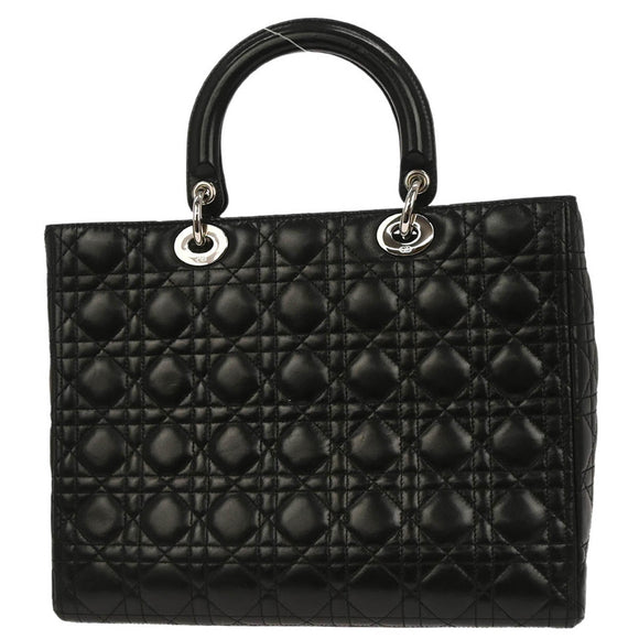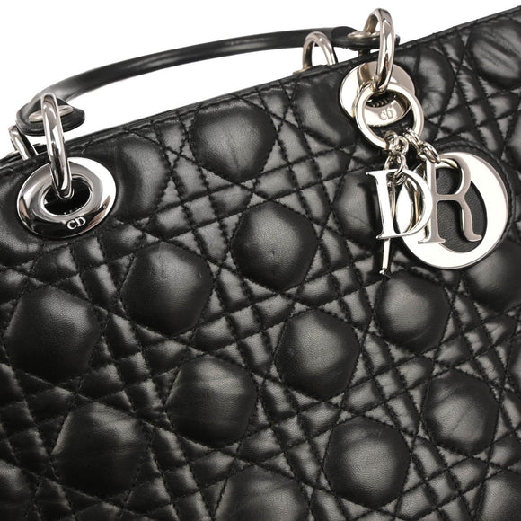 Christian Dior Black Lambskin Large Lady Dior Cannage Handbag