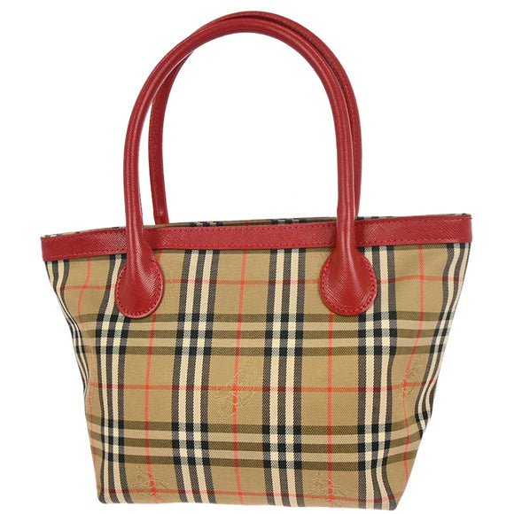 Burberrys Beige Red Canvas House Check Tote Handbag