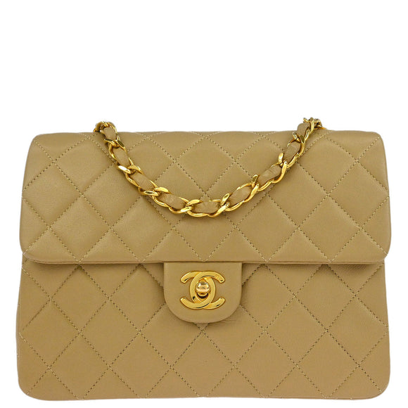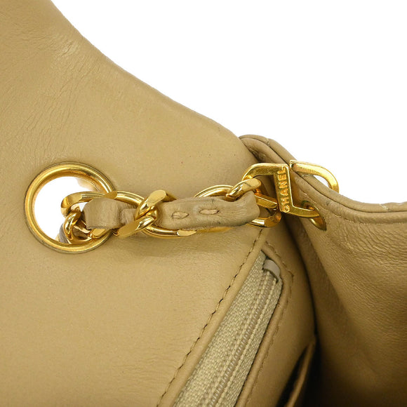 Chanel Beige Lambskin Classic Square Flap Shoulder Bag 20