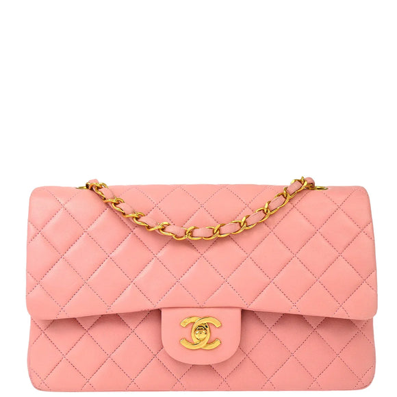 Chanel * 1996-1997 Pink Lambskin Medium Classic Double Flap Shoulder Bag