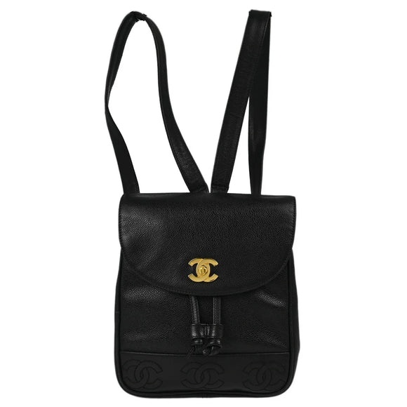 Chanel 1996-1997 Black Caviar Triple CC Backpack