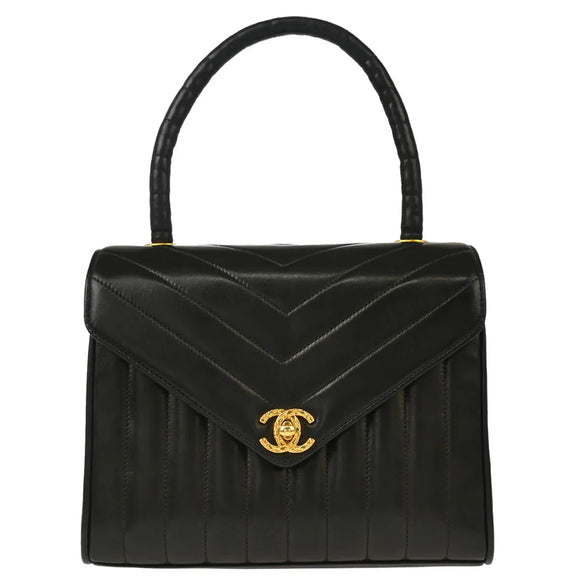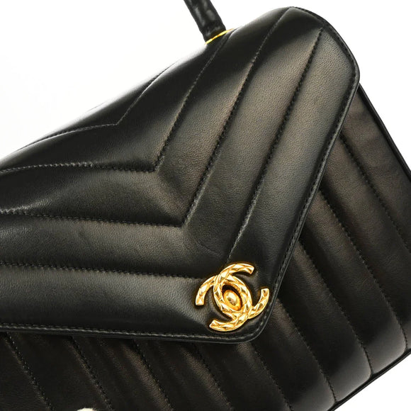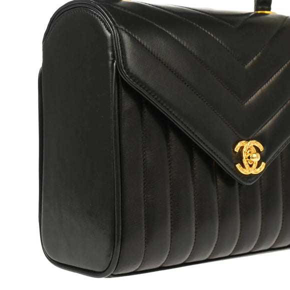 Chanel 1991-1994 Black Lambskin Chevron Handbag