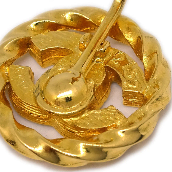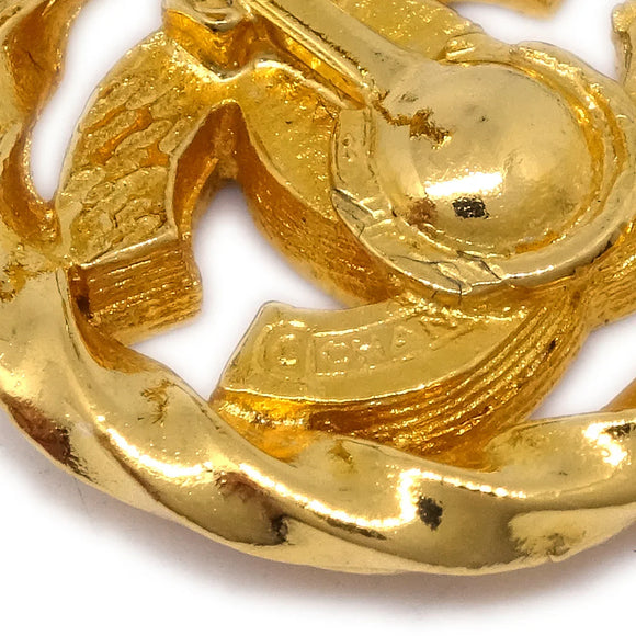 Chanel Gold Button Earrings Clip-On Rhinestone 2137