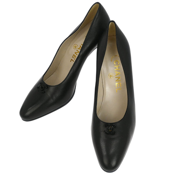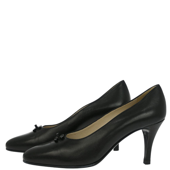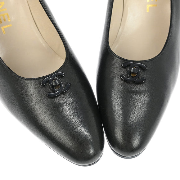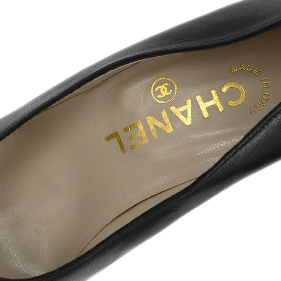 Chanel * Black Lambskin Turnlock Pumps Shoes #35