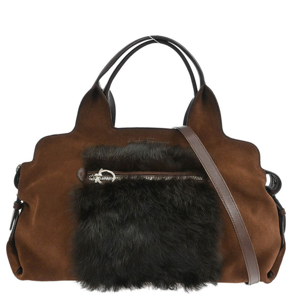 Salvatore Ferragamo * Brown Suede Gancini Handbag