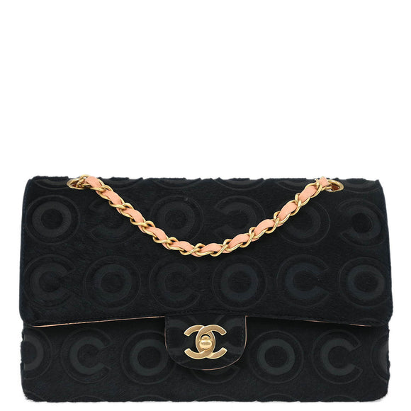 Chanel * 2002-2003 Black Pony Hair Medium Classic Double Flap Shoulder Bag