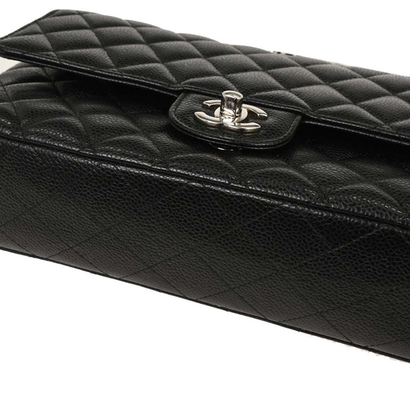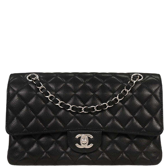Chanel 2017 Black Caviar Medium Classic Double Flap Shoulder Bag