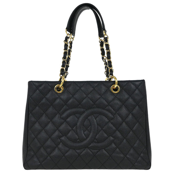Chanel 2012-2013 Black Caviar Grand Shopping Tote GST Chain Handbag