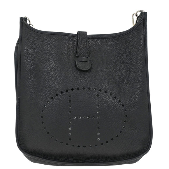 Hermes Black Taurillon Clemence Evelyne 3 GM Shoulder Bag