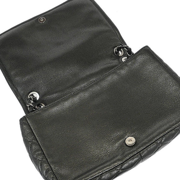 Chanel 2010-2011 Gray Caviar Full Flap Chain Shoulder Bag