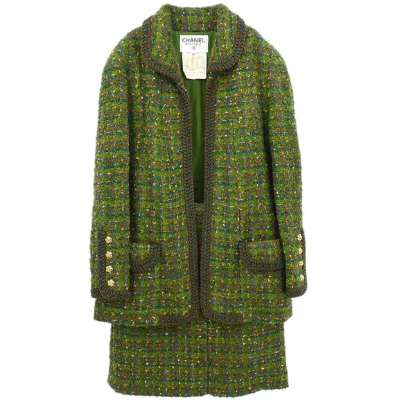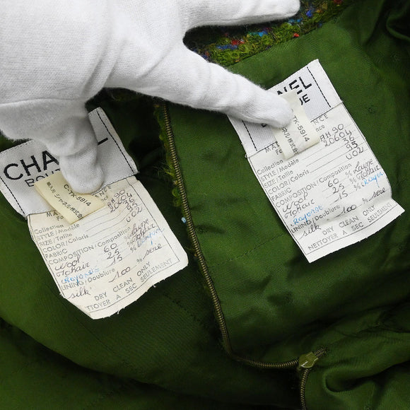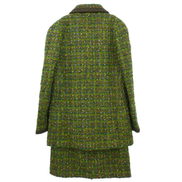 Chanel 1990 Setup Suit Jacket Skirt Tweed Green #36