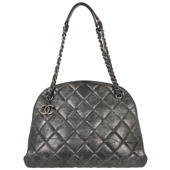 Chanel 2012 Gray Calfskin Large Mademoiselle Bowling Bag