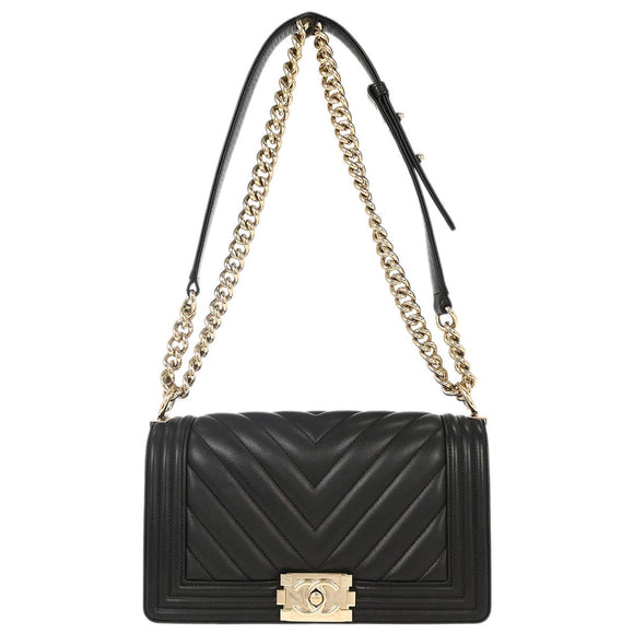 Boy Chanel Black Lambskin Chevron Medium Shoulder Bag
