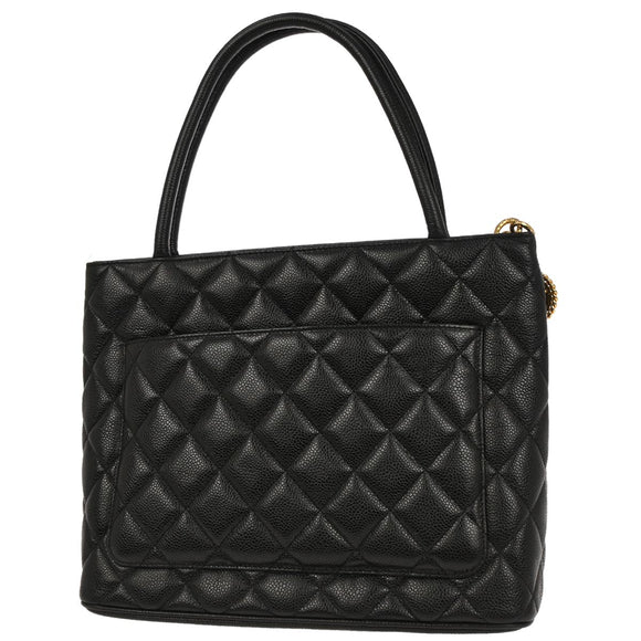 Chanel 2002-2003 Black Caviar Skin Medallion Tote Handbag
