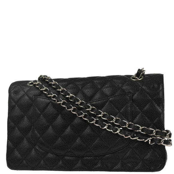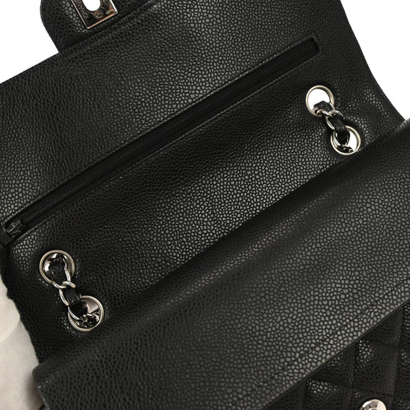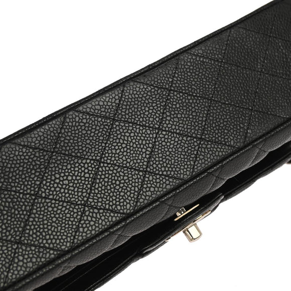 Chanel 2010-2011 Black Caviar Skin Medium Classic Double Flap Shoulder Bag