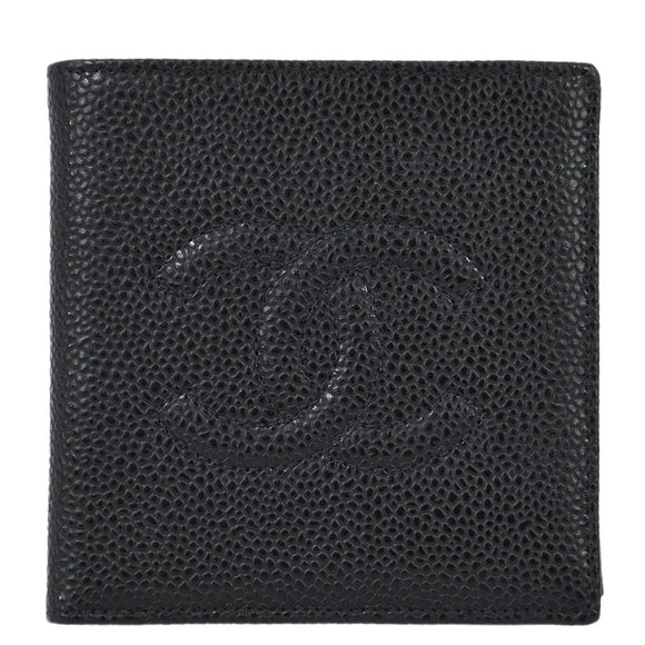 Chanel 2000-2001 Black Caviar Bifold Wallet Purse