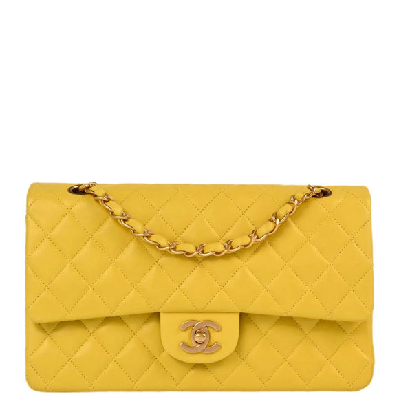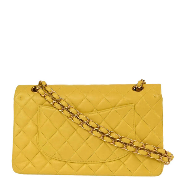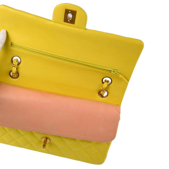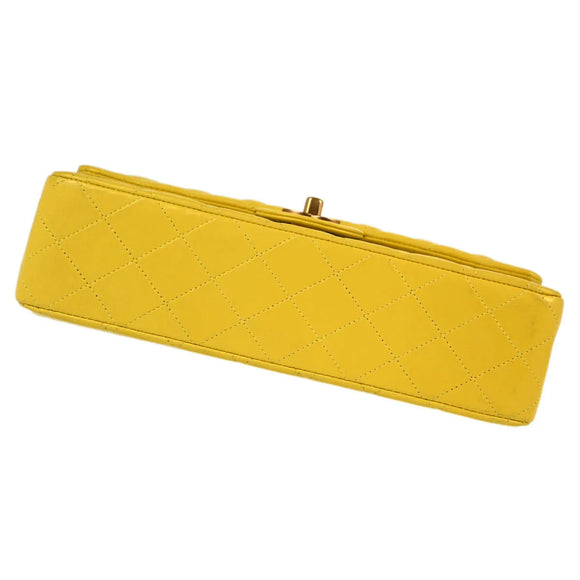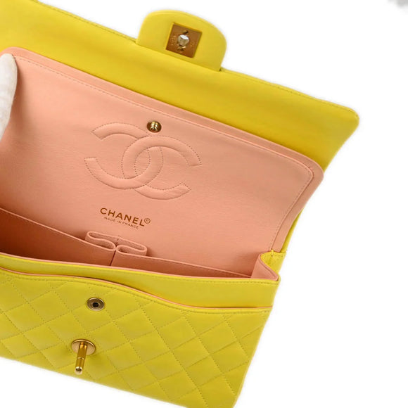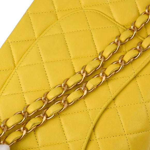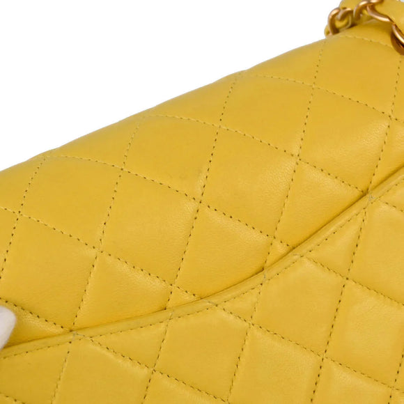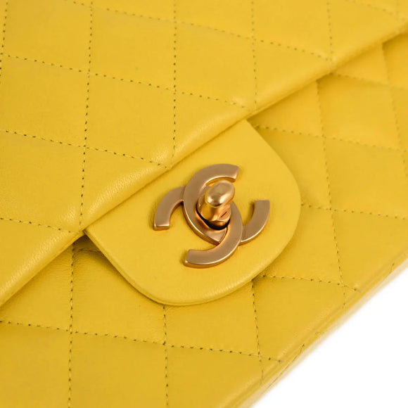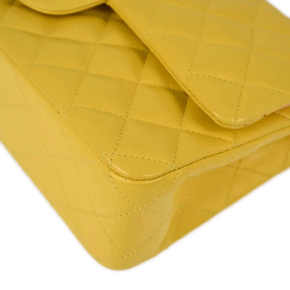 Chanel 2000-2001 Yellow Lambskin Medium Classic Double Flap Shoulder Bag