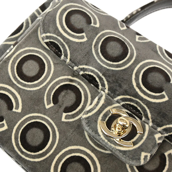 Chanel 2002-2003 Gray Velvet COCO Handbag