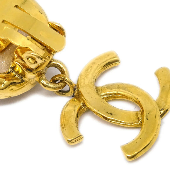 Chanel Gold Costume Pearl Dangle Earrings Clip-On 93A