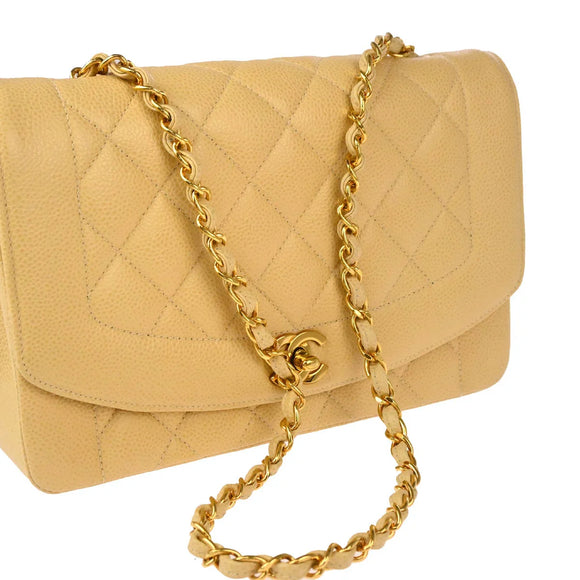 Chanel 1994-1996 Beige Caviar Medium Diana Shoulder Bag